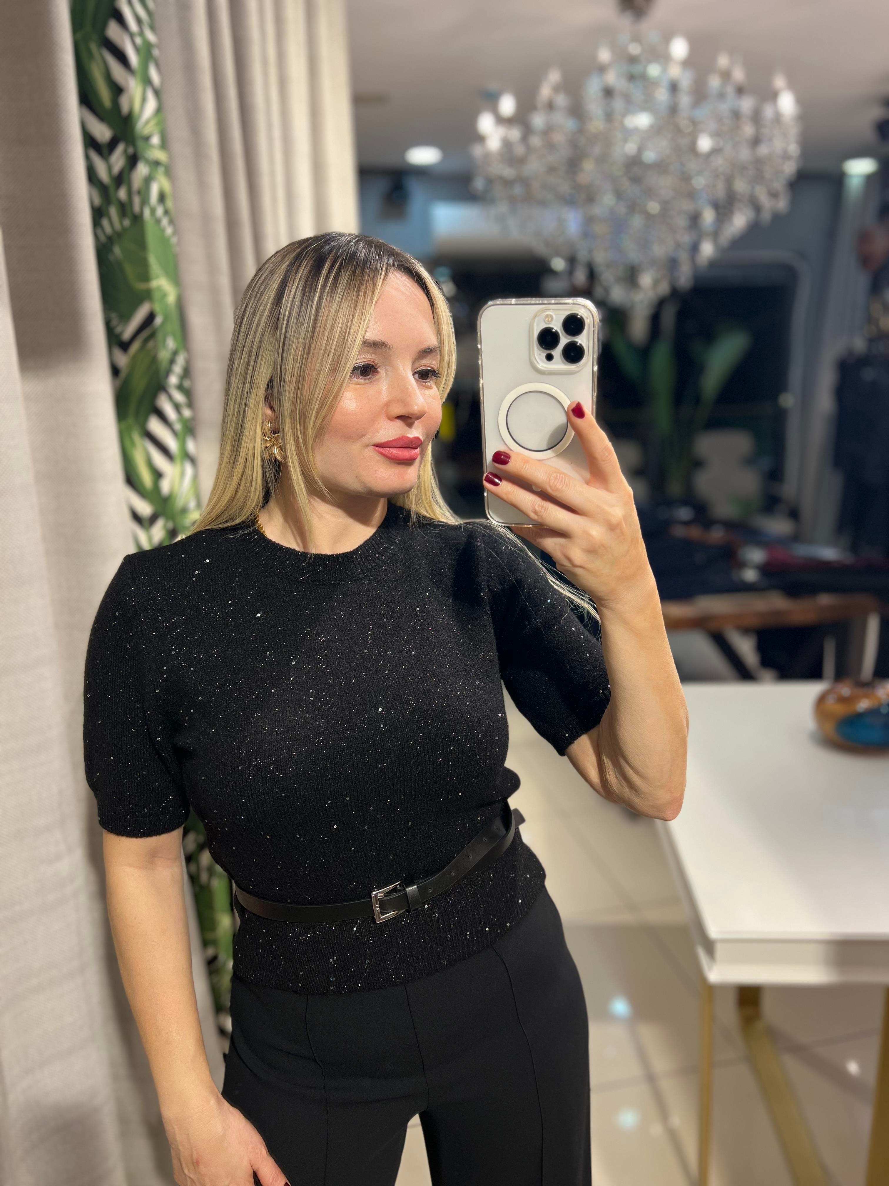Pullu Siyah Triko,